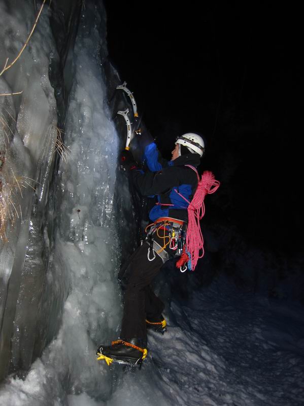 Abstieg in der Dunkelheit, und dann noch ein bisschen Stirnlampen-Eisbouldern!