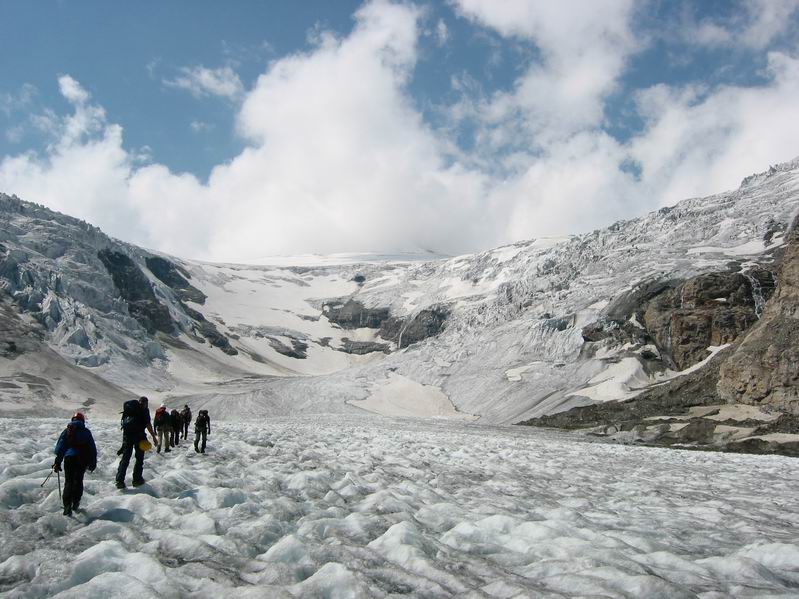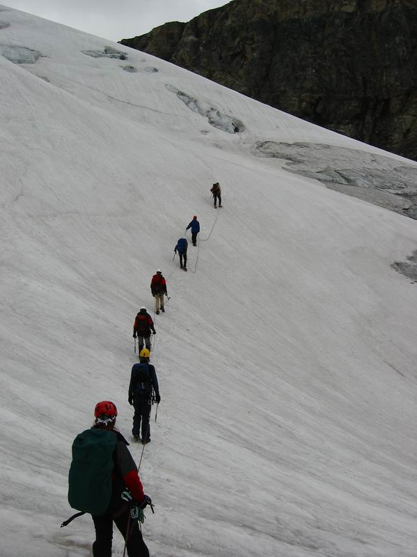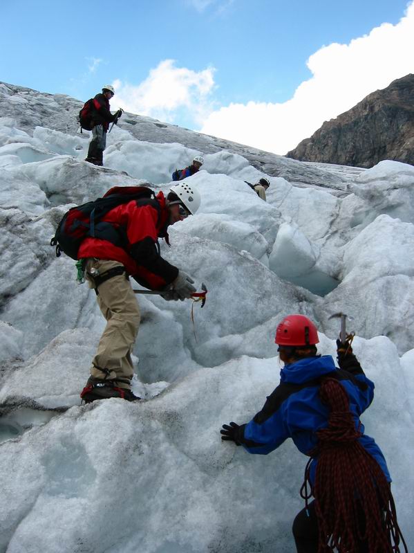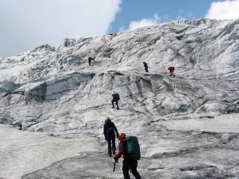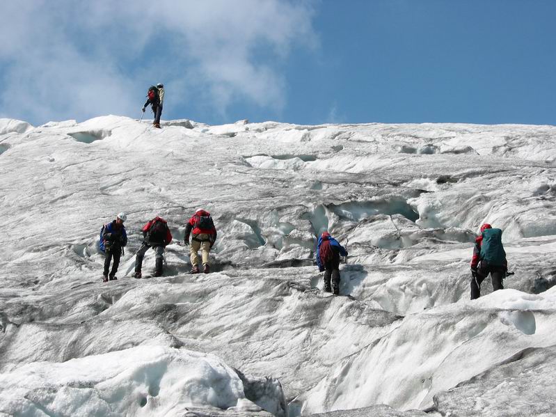 Aufstieg durch den Gletscherbruch