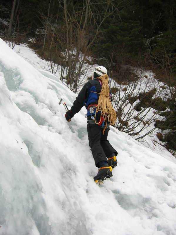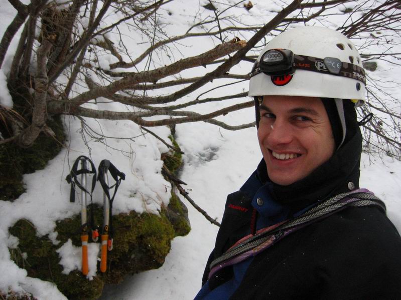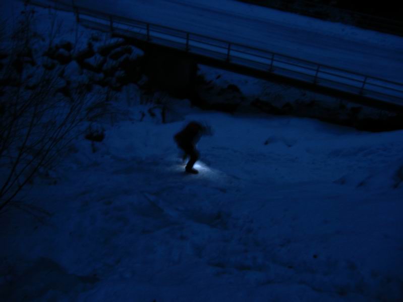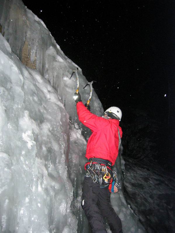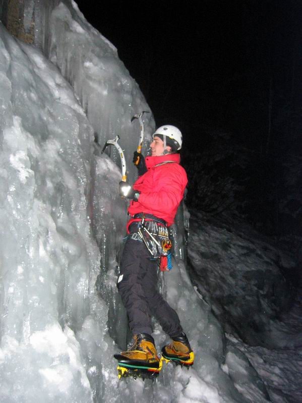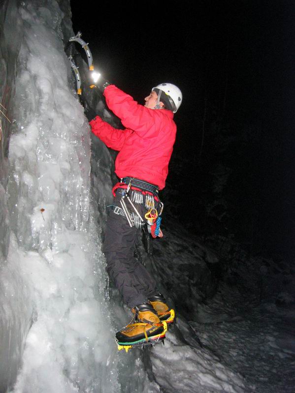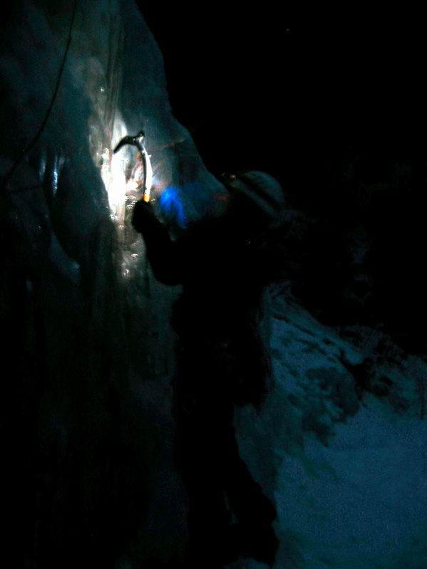 Abstieg in der Dunkelheit, und dann noch ein bisschen Stirnlampen-Eisbouldern!