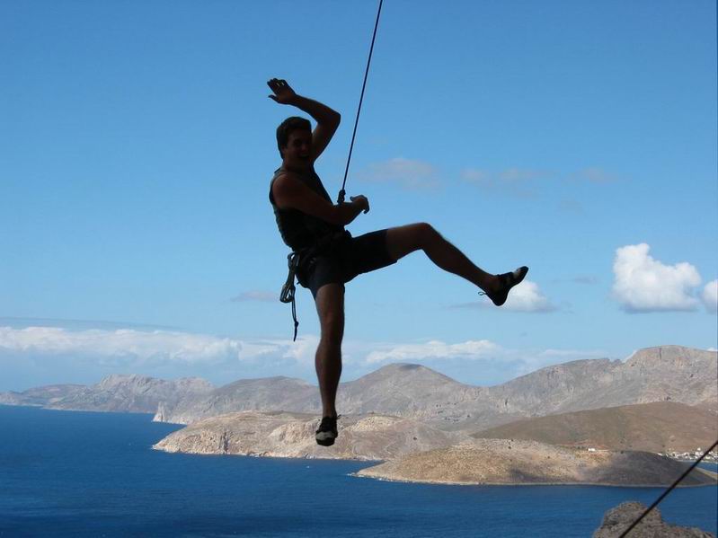 entspannter Pendler nach dem Rotpunkt Durchstieg von "Carpe Diem" |