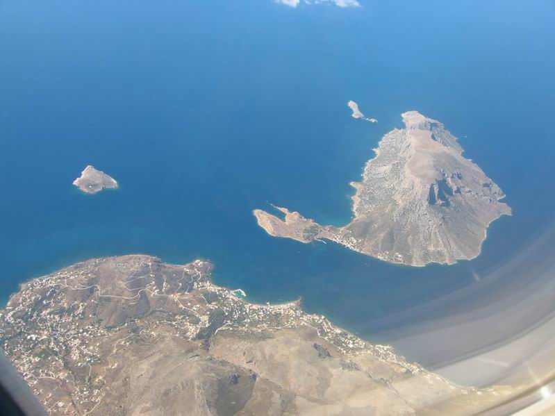 und die Insel Telendos vom Flieger aus.